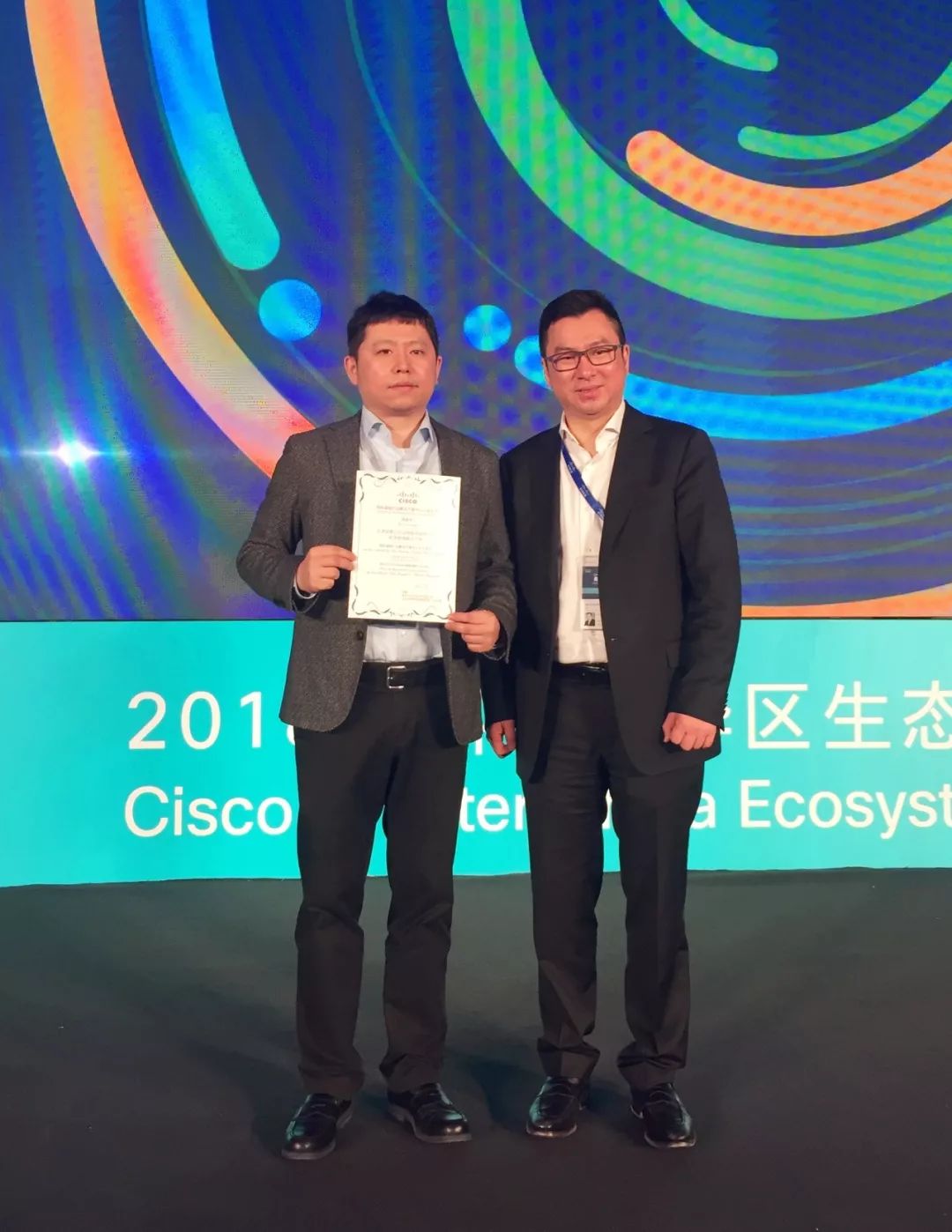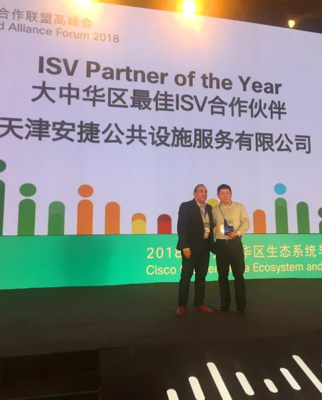 本次峰會上,思科卓越行業(yè)解決方案中心特授予天津安捷公共設施服務有限公司“能源管理解決方案”認證證書,并且為安捷頒發(fā) ISV Partner of the Year“大中華區(qū)最佳ISV合作伙伴”榮譽獎項。