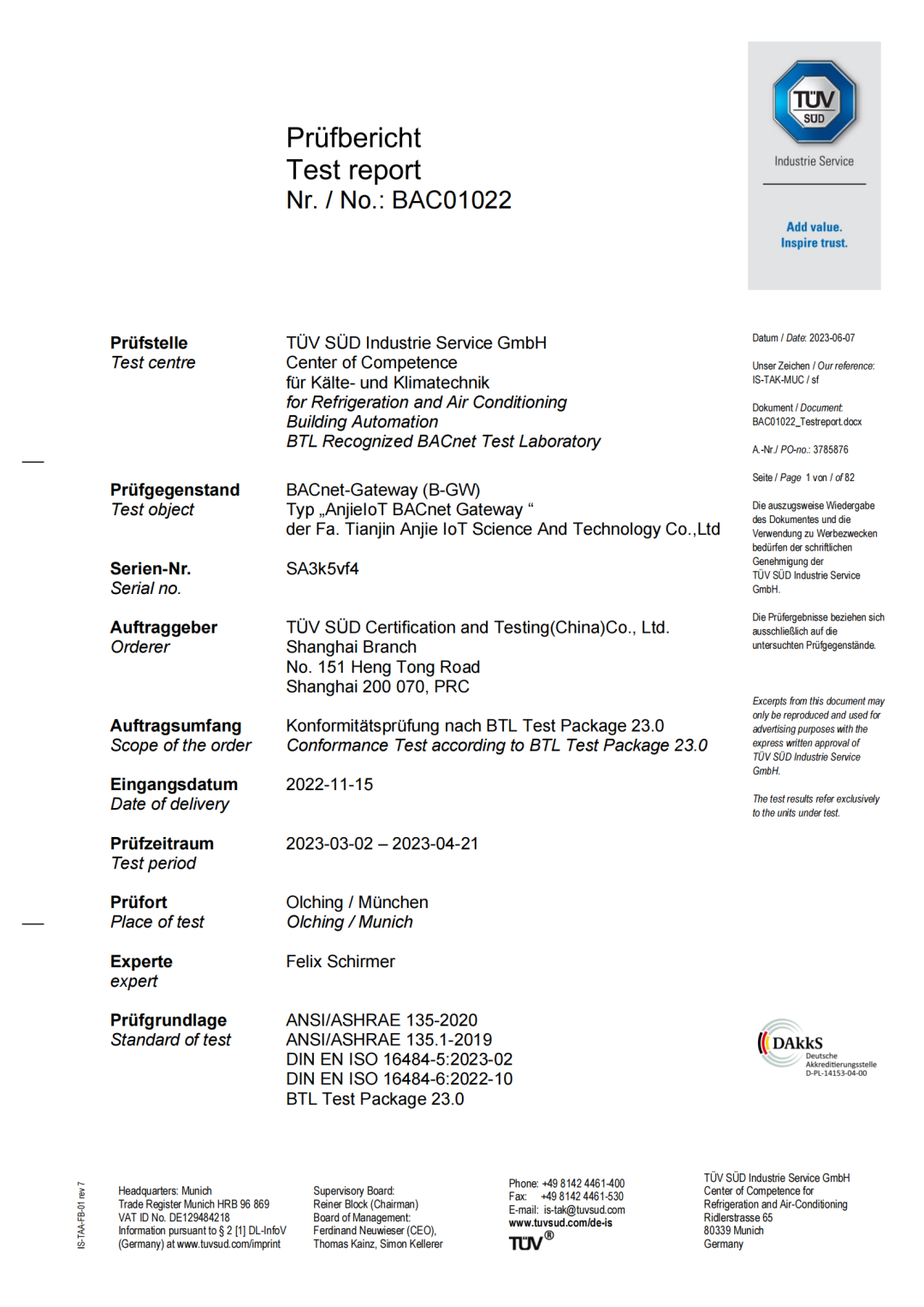 近日,由天津安捷物聯(lián)科技股份有限公司自主研發(fā)設(shè)計(jì)的GWY系列智能網(wǎng)關(guān)產(chǎn)品成功通過(guò)BTL(BACnet Testing Laboratories )認(rèn)證,該項(xiàng)認(rèn)證是國(guó)際樓宇自控領(lǐng)域的第一權(quán)威認(rèn)證。