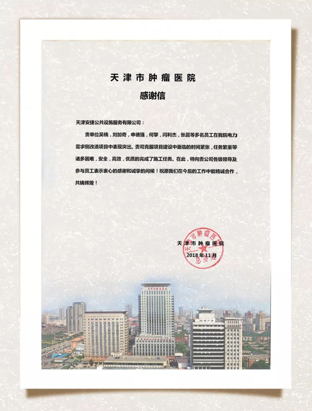為確保項(xiàng)目在短時(shí)間內(nèi)改造完成,同時(shí)具備科學(xué)性、專業(yè)性、合理性。安捷的工作人員利用起每分每秒,甚至連續(xù)四天工作到凌晨四點(diǎn)鐘。項(xiàng)目的完成離不開前線人員加班加點(diǎn)的工作,同時(shí)也離不開各部門積極配合,各級(jí)領(lǐng)導(dǎo)的大力支持。完工驗(yàn)收會(huì)上,天津市腫瘤醫(yī)院各級(jí)領(lǐng)導(dǎo)對(duì)安捷交付的工作成果非常滿意,對(duì)安捷工作人員的專業(yè)態(tài)度及敬業(yè)精神表達(dá)了高度的贊揚(yáng)。