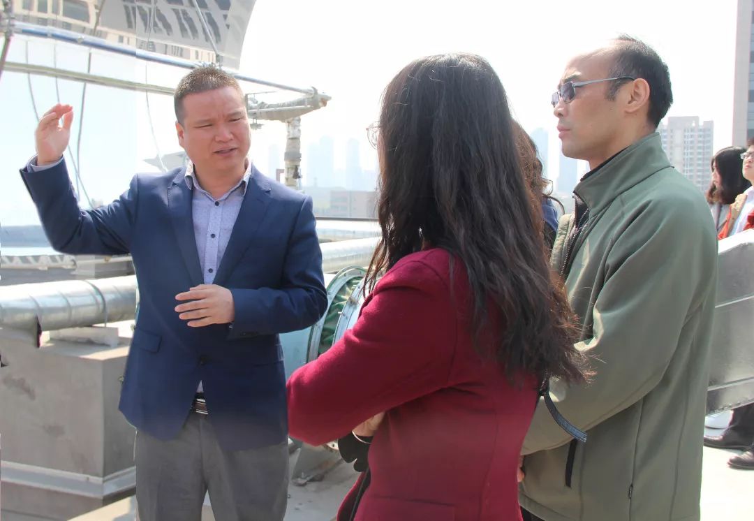 安捷物聯(lián)創(chuàng)新中心副主任王立波帶領(lǐng)參觀頂層太陽能裝置