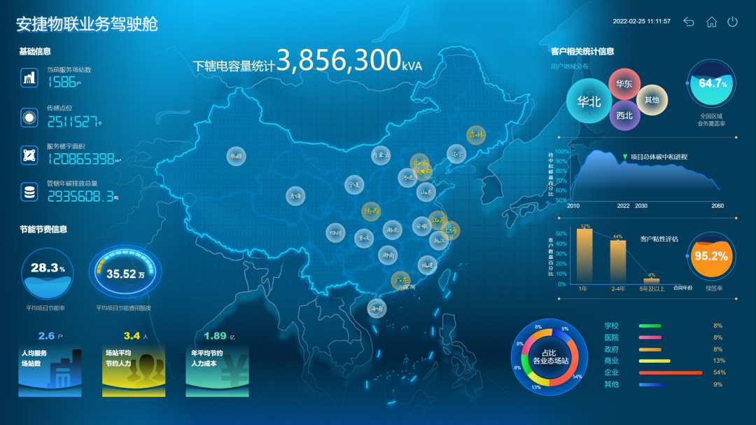依托本成果,安捷物聯(lián)成為國內(nèi)首家通過BSI(英國標(biāo)準(zhǔn)協(xié)會)認(rèn)證(基于PAS 2060:2014標(biāo)準(zhǔn)實現(xiàn)碳中和)的綜合能源解決方案提供商,截至2021年10月,本成果已服務(wù)包括國家會展中心(天津)、西安曲江開發(fā)區(qū)、北京亦莊科技新城、北京大學(xué)等全國一千余家用戶,覆蓋大型公共建筑、商業(yè)地產(chǎn)、酒店、軌道交通等領(lǐng)域。應(yīng)用樓宇面積超1億平米,可學(xué)習(xí)、可分析、可預(yù)測、可決策,能夠幫助用戶將樓宇保持在最健康的狀態(tài),同時使樓宇內(nèi)的用戶體驗達(dá)到最佳,可節(jié)約運行成本50%以上,節(jié)省系統(tǒng)維護(hù)費用20%以上,降低能耗15%以上,降低碳排放超百萬噸。