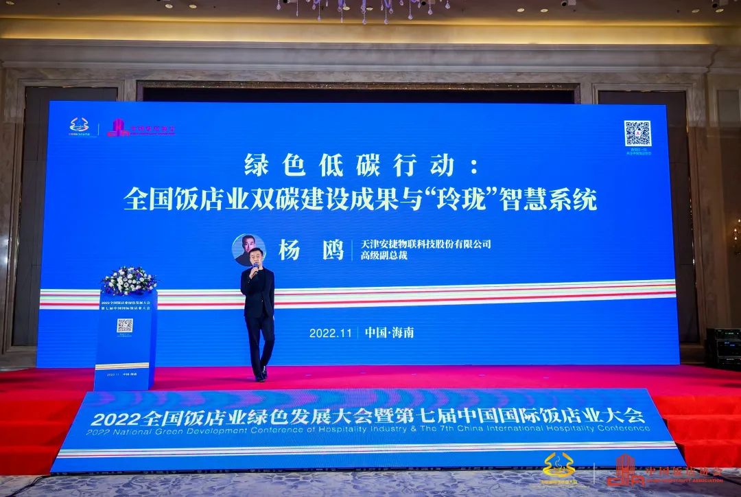 會上,天津安捷物聯(lián)科技股份有限公司高級副總裁楊鷗,正式發(fā)布了《綠色低碳行動:全國飯店業(yè)雙碳建設(shè)成果與“玲瓏”智慧系統(tǒng)》。