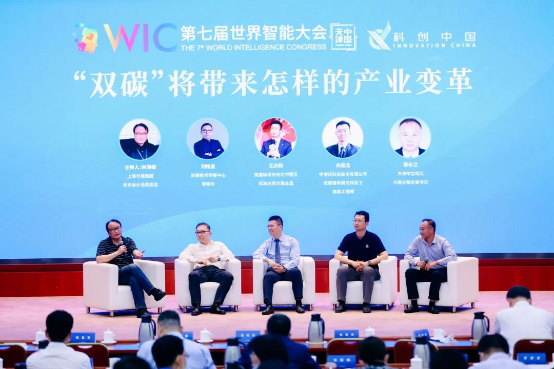 在圓桌論壇環(huán)節(jié),安捷物聯(lián)董事長(zhǎng)劉柏呈與上海華建集團(tuán)華東設(shè)計(jì)總院總監(jiān)林海雄,BSI英國(guó)標(biāo)準(zhǔn)協(xié)會(huì)方案解決專家王慶陽(yáng),中國(guó)建筑科學(xué)研究院、低碳建筑研究中心關(guān)運(yùn)龍博士,寶坻區(qū)大唐莊書記薛長(zhǎng)江,就 “雙碳”將帶來(lái)怎樣的產(chǎn)業(yè)變革為主題展開(kāi)探討。